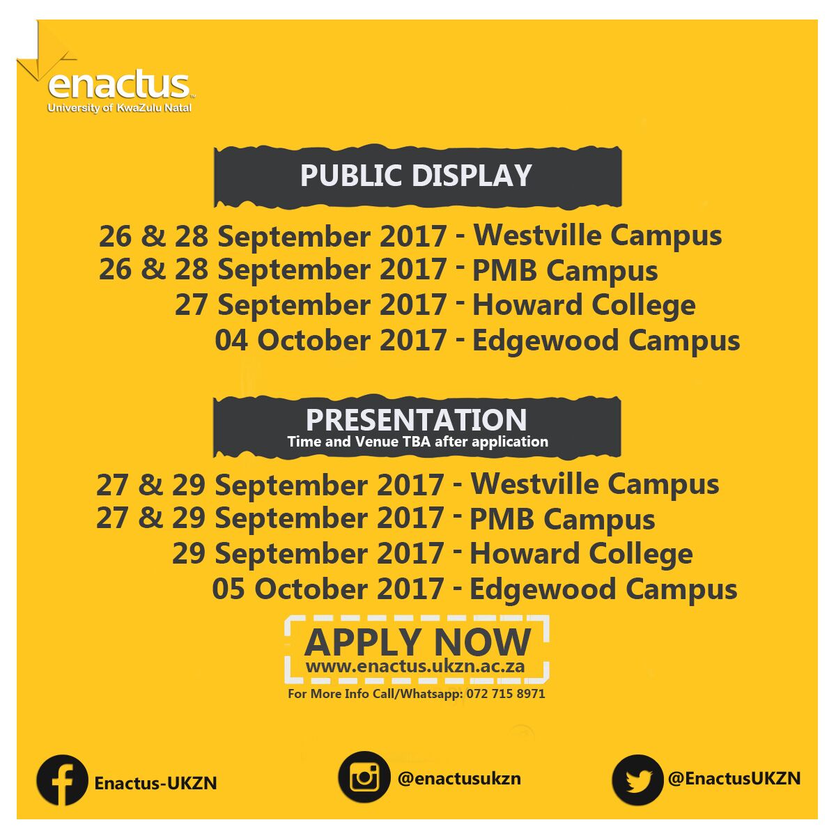 To apply visit: http://enactus.ukzn.ac.za/joining